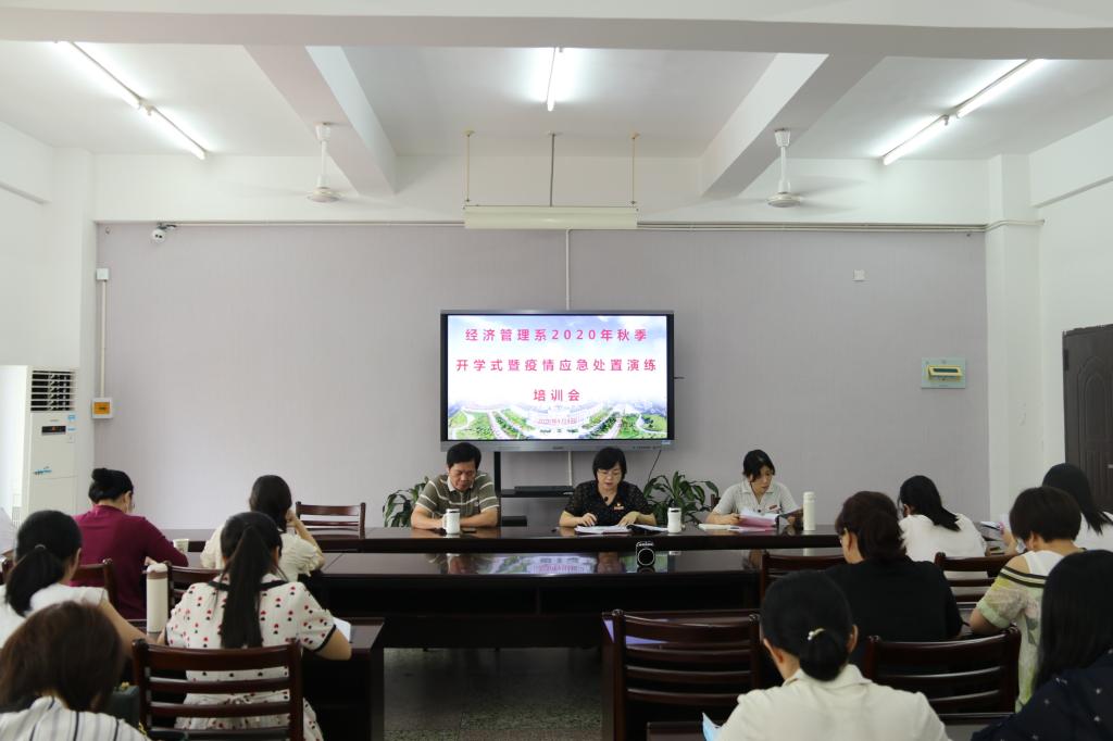 为确保2020年秋季开学员工报到工作稳定有序地开展,进一步提高经济管理系师生疫情防控应急处置能力,保障师生身体健康和生命安全,9月9日下午,经济管理系举行了2020年秋季开学式暨疫情应急处置演练培训会,全体教职员工参加了演练。