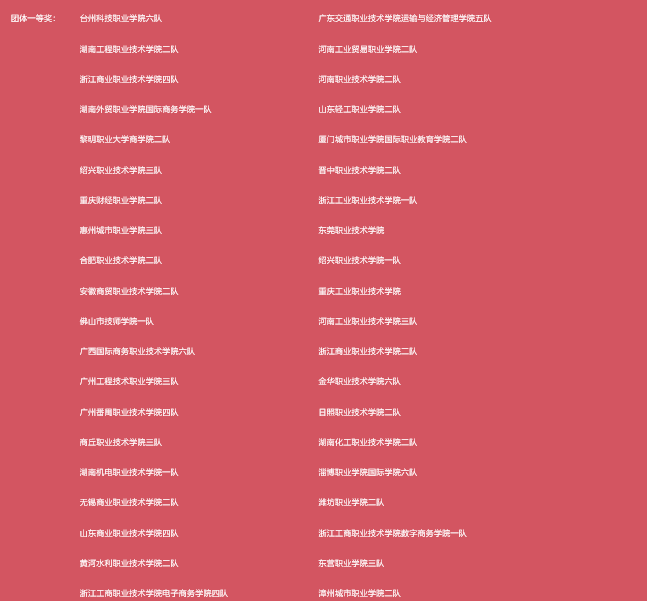 公司经管系国贸专业严静静、魏剑雄、傅春雨(指导老师王晓敏)和庄彩玲、张信垚、李丹妮(指导老师谢惠茹)分别组成了两支队伍代表公司参加了本次大赛,均获得本次大赛高职组赛站团体一等奖。