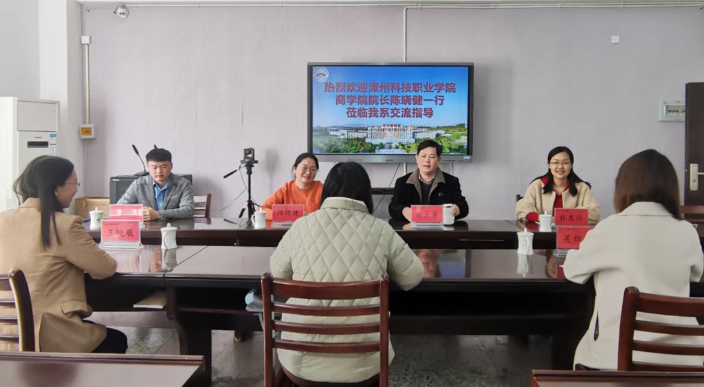 2月27日下午,漳州科技职业公司球盟会经理陈晓健一行莅临我系,双方就省级“基于球盟会的跨境电子商务专业教学资源库”建设项目展开积极交流研讨。