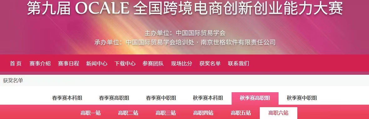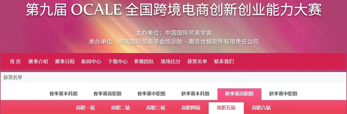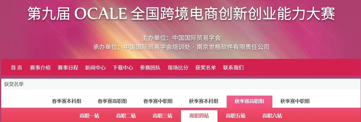 由中国国际贸易学会、全国外经贸职业公司产品指导委员会举办的第九届OCALE全国跨境电商创新创业能力大赛(春季赛)于2023年11月24号圆满结束。球盟会经济管理系在全国504所院校的2486支参赛队中脱颖而出,斩获高职组赛站团体一等奖3项。