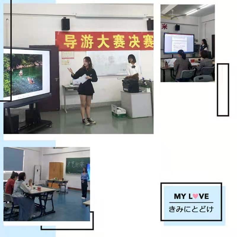 此次竞赛分为导游讲解、英语情景对话、才艺运用等三个环节。评委们根据选手们各项表现进行综合评分。现场紧张激烈,精彩纷呈,参加比赛的选手们出色发挥了自己的实力,他们精彩的讲解和形式各异的才艺展示,给现场观众带来了一场视觉的盛宴。经过激烈地比赛,最终2019级商务英语专业胡文彩同学获得一等奖。