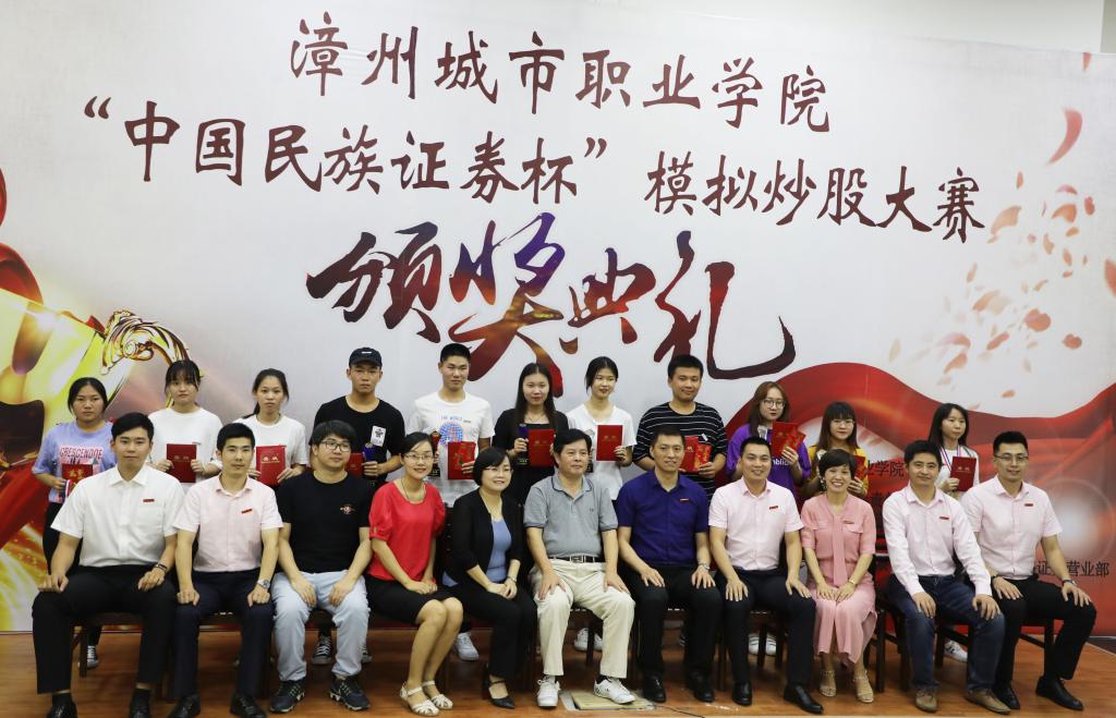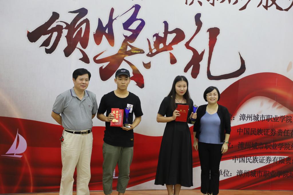 6月11日晚,球盟会梯教四欢声笑语,“中国民族证券杯”模拟炒股大赛颁奖典礼正在热烈进行中。方正证券(中国民族证券)福建区域负责人、全国五一劳动奖章获得者、复旦大学福建员工会副会长曾剑光总经理及中国民族证券漳州新华北路证券营业部人力资源部陈志斌总经理等领导嘉宾,以及经济管理系主任张少华老师、党总支书记吴李霞老师、教学科科长林惠玲老师、团总支书记陈林艺老师、互联网金融教研室主任叶淑惠老师出席了颁奖典礼,经济管理系主任张少华老师在颁奖典礼上做了精彩致词。到此,球盟会经济管理系联合中国民族证券漳州新华北路证券营业部共同举办的“中国民族证券杯”模拟炒股大赛画上了一个圆满的句号。