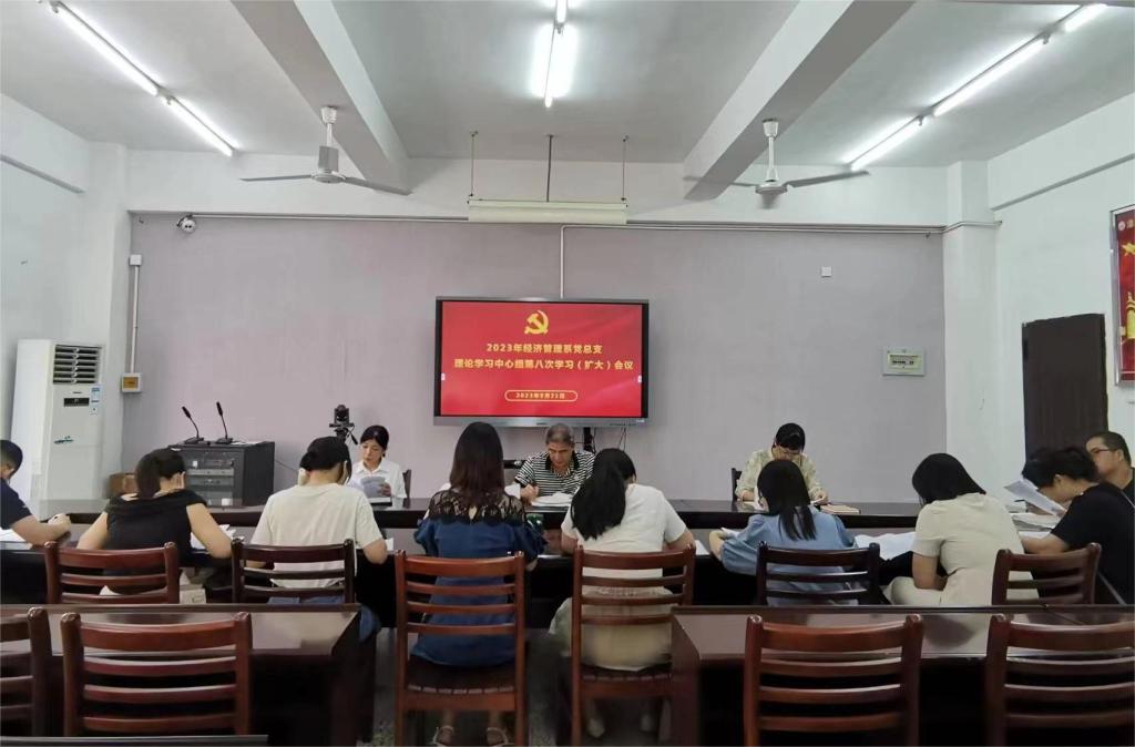 2023年9月21日下午,经济管理系党总支理论学习中心组召开2023年度第八次学习(扩大)会议,系党总支委员和第一、第二党支部委员参加了会议,会议由系党总支书记曾顺和主持。